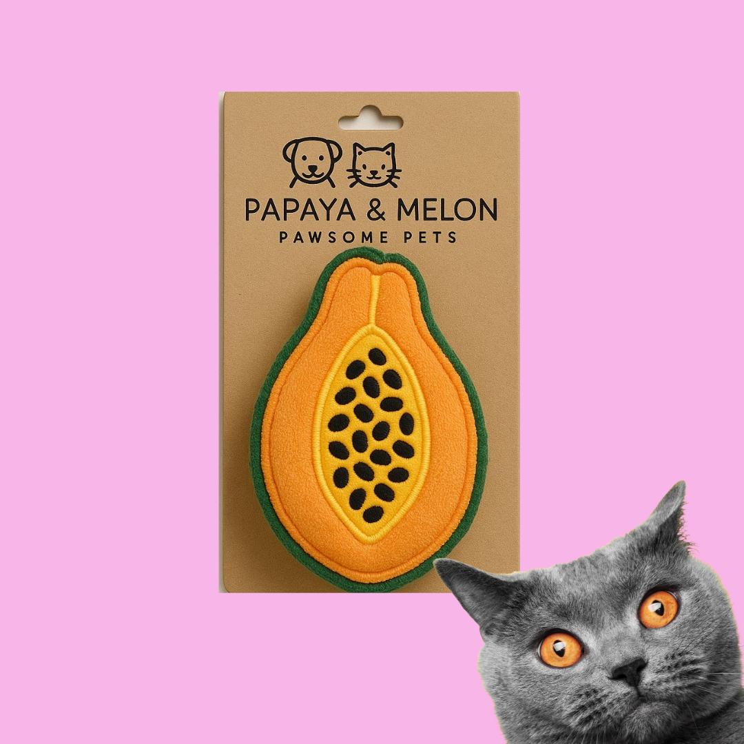 A juicy papaya-shaped plush toy for playful pups and curious cats!
